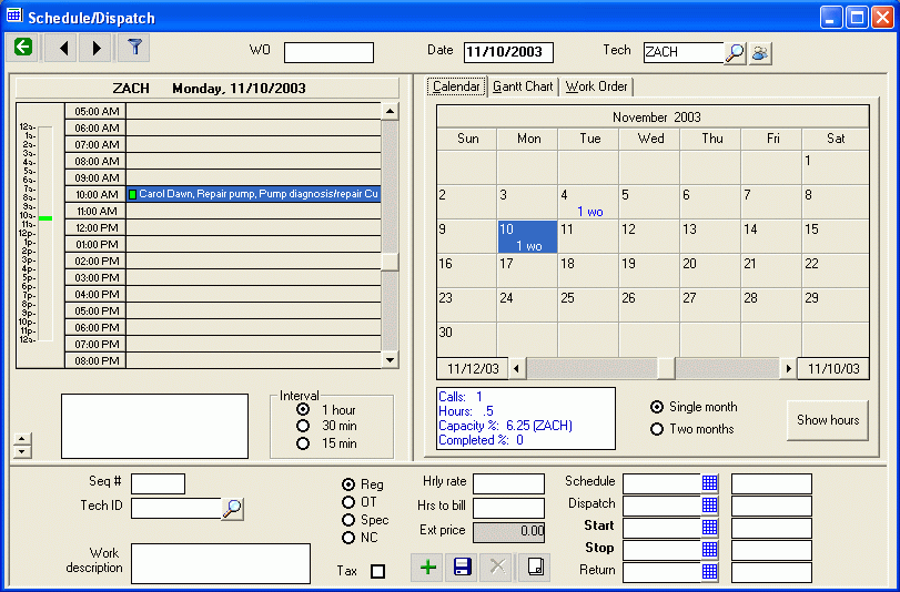 Work orders, Additional charges Scheduling, calendar