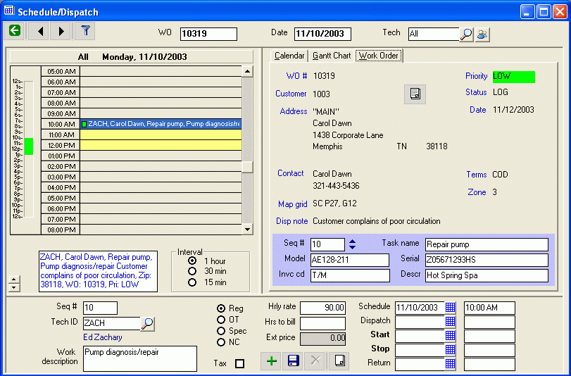 - Scheduling calendar comments. Freeform comments entries by tech and by day.
