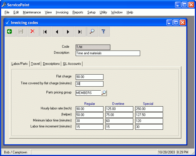 Invoicing codes