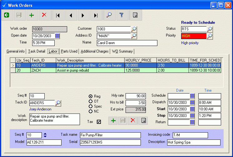 Work order entry, General Info Work order entry, tasks
